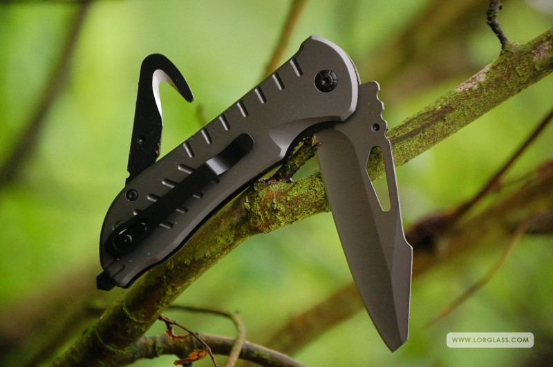 KANDAR N-298 jest nożem całkowicie manualnym, którego otwarcie odbywa się bez najmniejszego wspomagania sprężynowego, jak ma to miejsce w wielu ratowniczych nożach półautomatycznych. W tym konkretnym modelu, zarówno głownię noża jak i hak ratowniczy otwieramy kciukiem prawej dłoni, co odbywa się przez zdecydowane popchnięcie jednostronnego stalowego kołka (Thumb Stud).